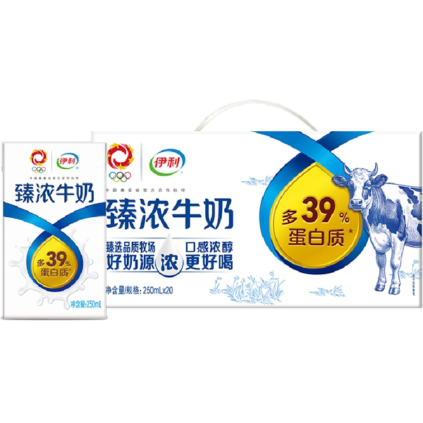 伊利臻浓牛奶原味250ml*20盒整箱学生早餐咖啡伴侣烘焙!! 下拉疯抢频道价格成立,到手43
