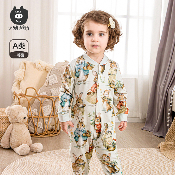小猪大卫婴幼儿对开连体衣秋纯棉新生儿